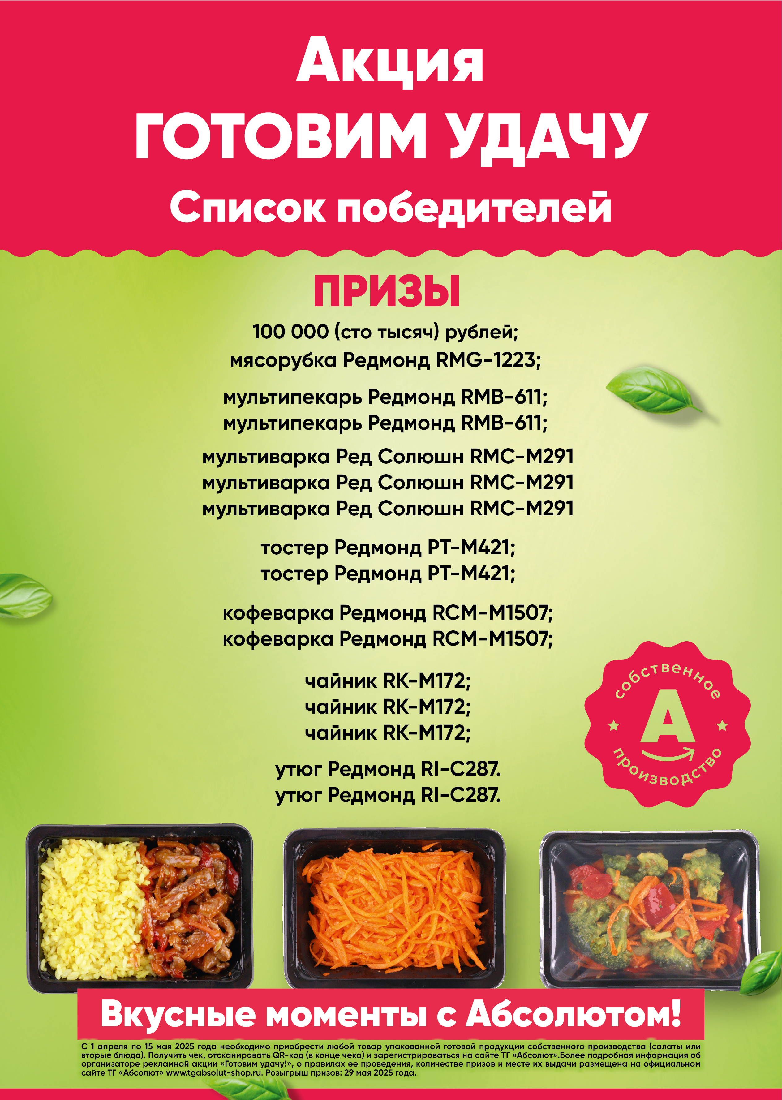 Поздравляем победителей Акции «Готовим удачу», которая проходила в магазине Абсолют по Республике Бурятия.